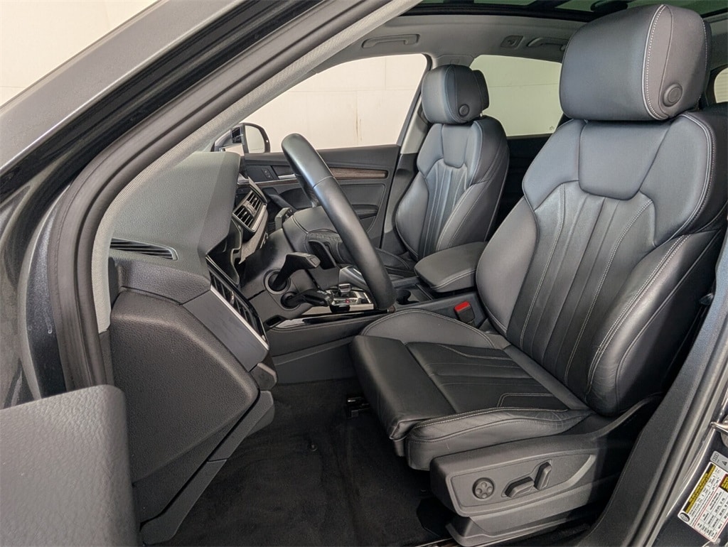 Q5 Prestige with Warm Weather package (Sport Seat both front seats identical with cool ventilation). Riding on air. There is no other way to put it. The sport seats difference other than cooling is “wings” that hold your butt and back in place, a 24 position electric adjustment on BOTH identical front seats with thigh support extenders, excellent for a couple with very bad backs. Power: watch out for fishtailing as you can feel G forces when accelerating, if you want. When researching a replacement for our sloppy 2017 Pilot I noticed most owners of other new vehicles in the south were complaining about AC unable to keep up with the Florida, Texas and desert heats. No problem here, the Q5 has more cool air than needed here at 5200’ in the sunny July southwest desert. Instrumentation is terrific with heads up display, maps and routing directly in front of the driver. (What is more ridiculous than the cars that put the map in the center stack and aim it straight to the rear of the car? Who is sitting on the shift to look forward at the map?) Moving on, the interior materials scream quality. Plenty of rear legroom for a knee replacement patient and headroom not a problem anywhere. Rear seats recline a couple inches. Owners manual very well written with detail. You can spend an evening laughing hysterically at the index though. Looking to program the garage door opener? Look in a subcategory under “O”, “Open and Close”! It goes on, and kept us looking up things just to laugh at where they are. Summarizing: most comfortable luxurious road rocket I’ve ever owned. - 5.0