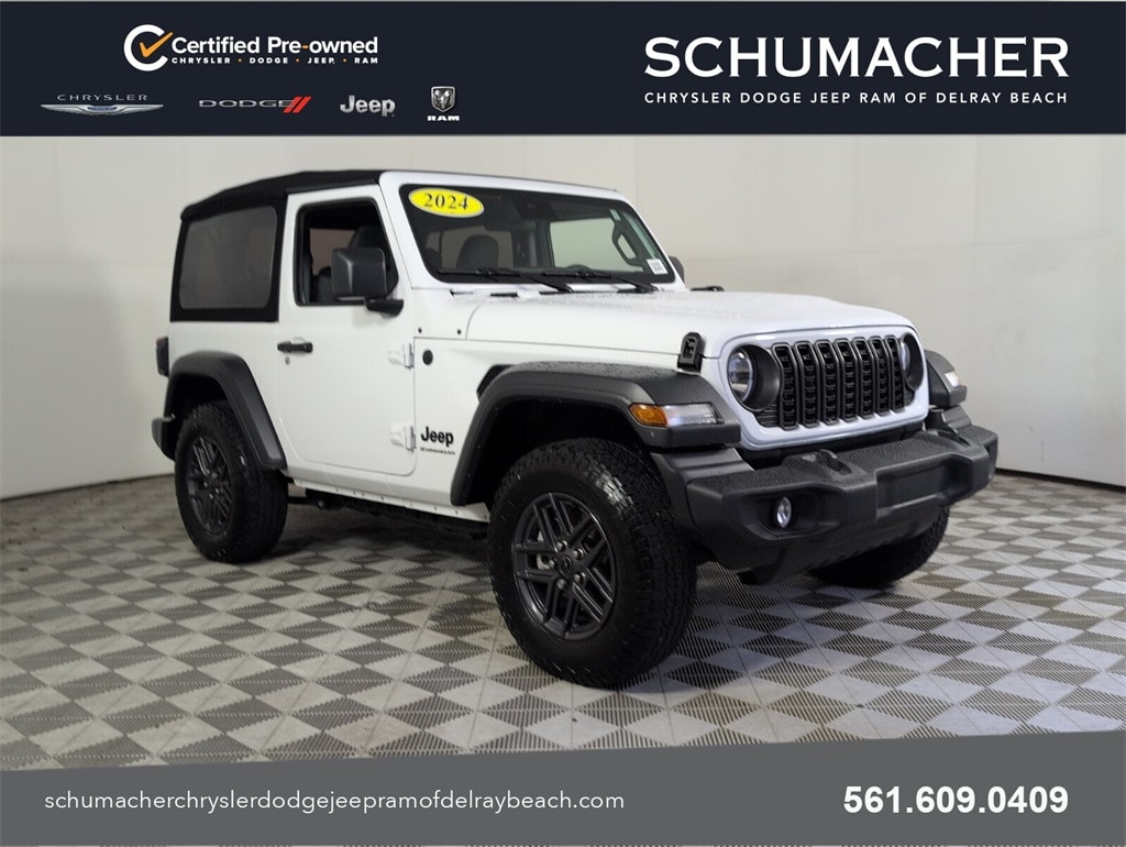 2024 Jeep Wrangler Sport S 2.0L I4 DOHC 8-Speed Automatic 4WD Bright White Clearcoat NEED DIRECT AND QUICKER ASSISTANCE? DIAL 561.454.1848 TO SPEAK TO A LIVE SALES CONSULTANT, Ready For Immediate Delivery, Passed Dealer Inspection, Vehicle Detailed, Fresh Oil Change, 110 MPH Vehicle Max Speed Calibration, 2-Door Passive Entry, Front Door Locks, 4-Wheel Disc Brakes, 8 Speakers, ABS brakes, Advanced Brake Assist, Air Conditioning w/Auto Temperature Control, Air Filtering, AM/FM radio: SiriusXM with 360L, Apple CarPlay/Android Auto, Auto High Beam Headlamp Control, Automatic Headlamps, Auxiliary Battery, Blind Spot & Cross Path Detection, Brake assist, Cloth Low-Back Bucket Seats, Cluster 7.0" TFT Color Display, Compass, Convenience Group, Corning Gorilla Glass, Deep Tint Sunscreen Windows, Delay-off headlights, Driver door bin, Driver vanity mirror, Dual front impact airbags, Dual front side impact airbags, Electronic Stability Control, Emergency/Assistance Call, Enhanced Adaptive Cruise Control, Front 1-Touch Down Power Windows, Front anti-roll bar, Front Bucket Seats, Front Center Armrest w/Storage, Front fog lights, Front reading lights, Heated Front Seats, Heated Steering Wheel, Injection Molded Black Rear Bumper, Integrated roll-over protection, LED Taillamps, Low tire pressure warning, MOPAR All-Weather Floor Mats, Non-Locking Fuel Cap w/o Discriminator, Normal Duty Suspension, Occupant sensing airbag, Outside temperature display, Overhead airbag, ParkSense Rear Park Assist System, ParkView Rear Back-Up Camera, Passenger door bin, Passenger vanity mirror, Power Heated Mirrors, Power steering, Premium Wrapped Steering Wheel, Quick Order Package 22S Sport S, Radio data system, Radio: Uconnect 5 w/12.3" Display, Rear anti-roll bar, Rear reading lights, Remote Keyless Entry, Remote Start System, Safety Group, Security Alarm, Speed control, Speed Sensitive Power Locks, Sport S, Start-Stop Dual Battery System, Steering wheel mounted audio controls, Sun Visors w/Illuminated Vanity Mirrors, Tachometer, Telescoping steering wheel, Tilt steering wheel, Traction control, Trip computer, Universal Garage Door Opener, Variably intermittent wipers, Wheels: 17" x 7.5" Black Steel Styled, Wheels: 17" x 7.5" Gray.